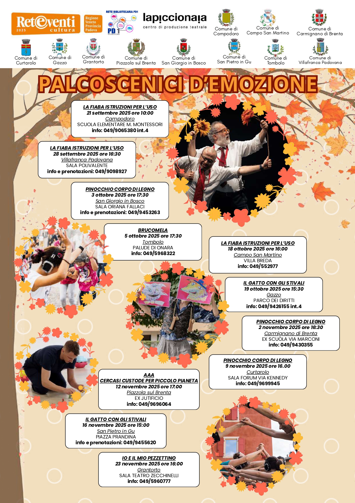 L'appuntamento di Grantorto è previsto per Domenica 23 Novembre 2025 alle ore 16:00 presso la Sala Teatro G.M. Zecchinelli con lo spettacolo IO E IL MIO PEZZETTINO a cura della Compagnia Teatrale La Piccionaia.